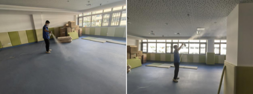 施工第1道:完全分解空氣中游離態污染物,采用方法:全空間霧化技術(空調新風窗戶需關閉)。
