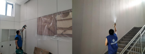 施工第1道:完全分解空氣中游離態(tài)污染物,采用方法:全空間霧化技術(空調(diào)新風窗戶需關閉)。