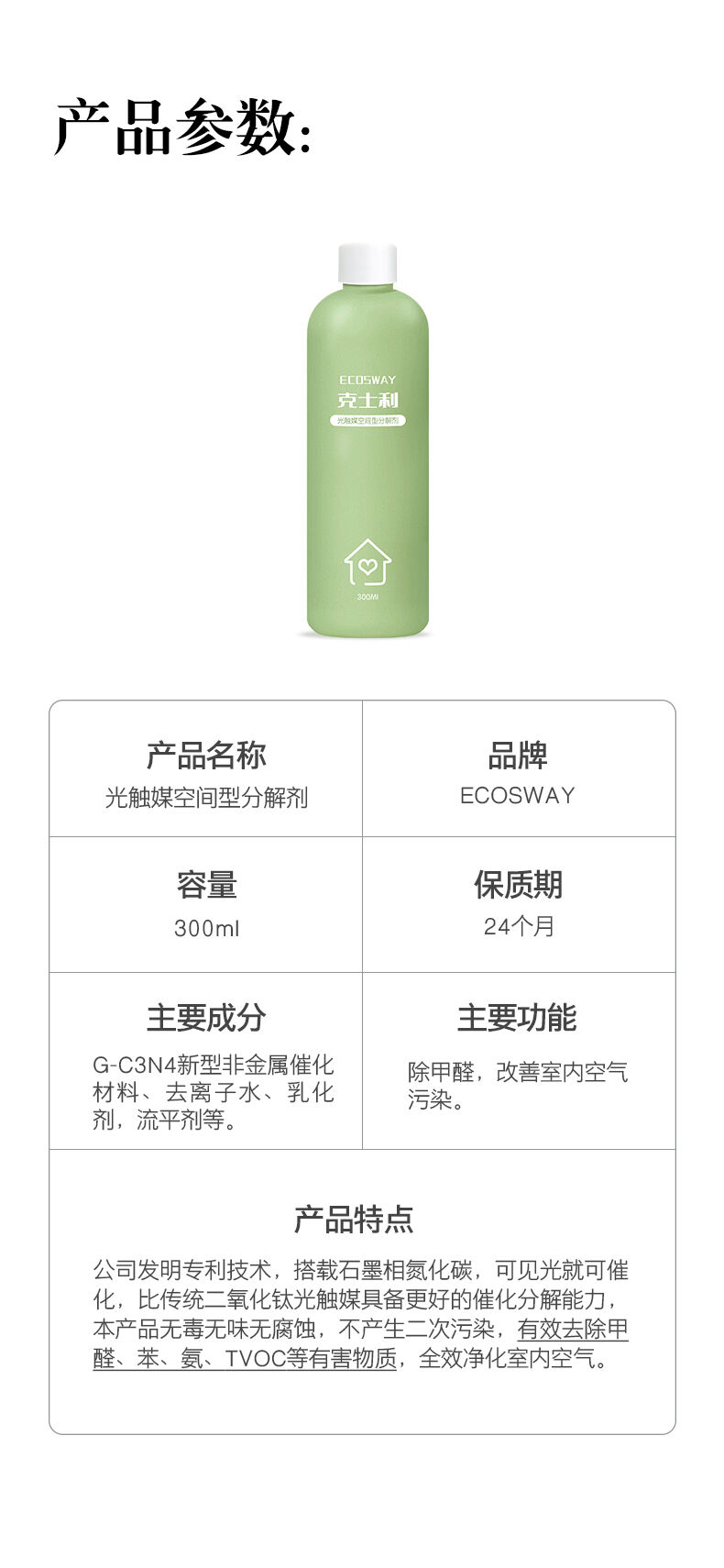 克士利ecosway光觸媒空間型家用除甲醛噴霧劑